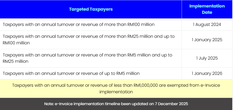 | July 2025 | Businesses with revenue above RM500,000 |